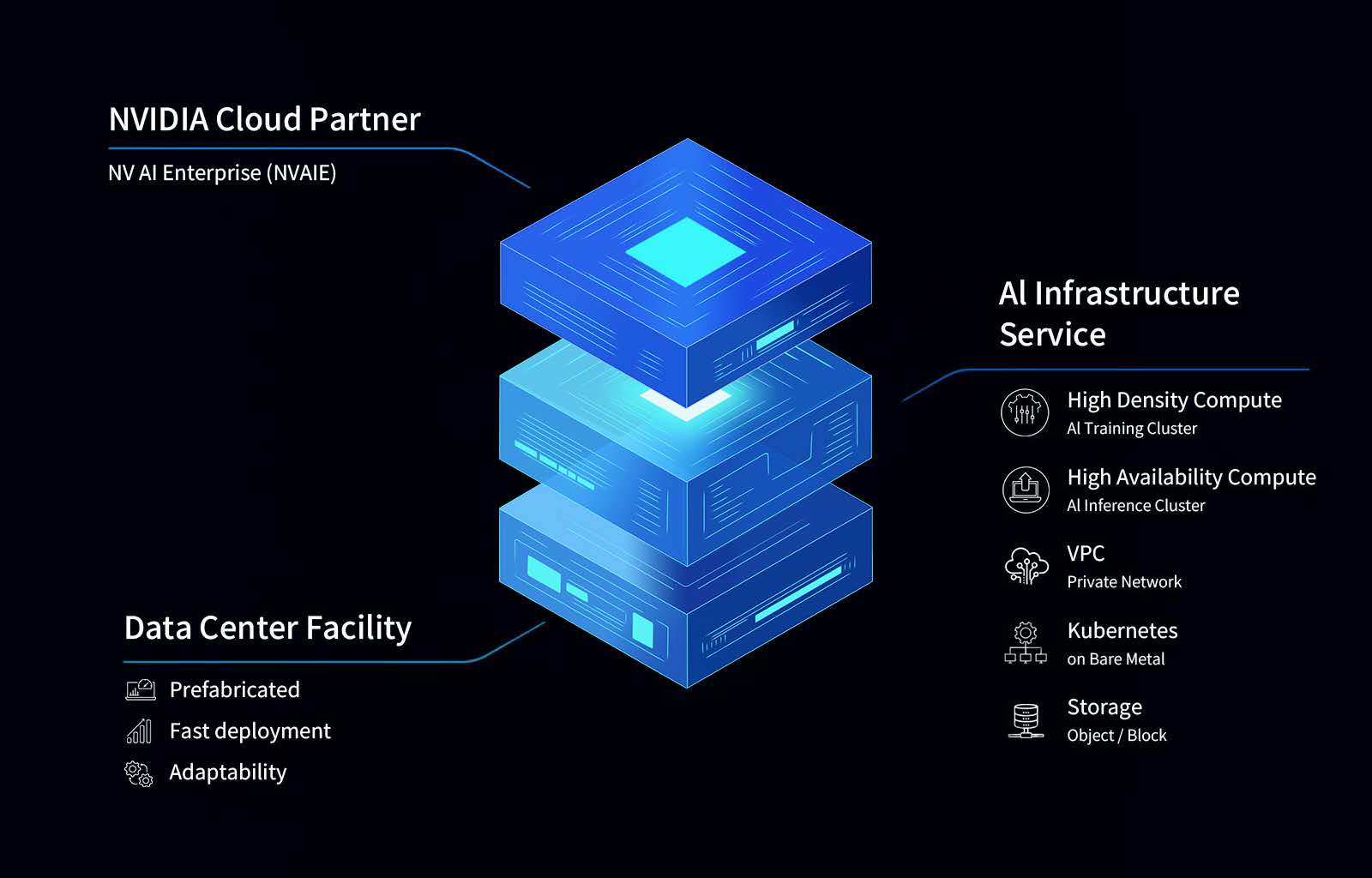 Provide one-stop intelligent computing center solutions: design, construction, and maintenance management of large-scale GPU data centers.